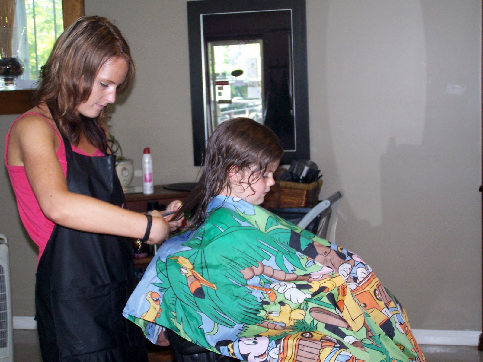 Took Layla for her very first haircut today. We went to Dynamic Hair Design in Kincardine. We just did a wee trim, taking just a couple of inches off. Layla wasn't quite sure what to expect but she was happy with how it went and with her "new do".